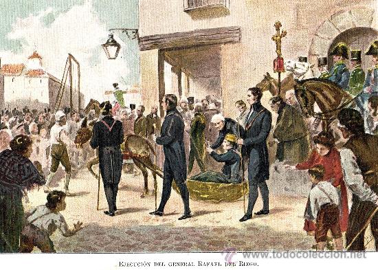 1823. 10. 01 Gobernu liberala deuseztatu eta monarkia absoluta, Fernando VII, berriz Espainian, eta Nafarroan, Fernando III, naski.Eta D. Rafael de Riego? Madrilen urkatua.